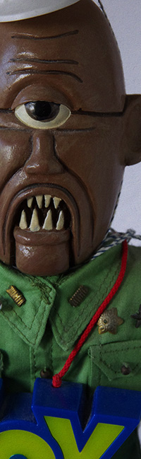 | ■私はある時国立博物館に行き古墳から出土した国宝のタコ埴輪を鑑賞していたならば、我が家秘刀のタコナイフと埴輪の毛(タコ足?)が反応しはじめた。赤紫と夕焼け空がキレイに輝くそんな日の出来事であった。Byラヴラヴ工作 |