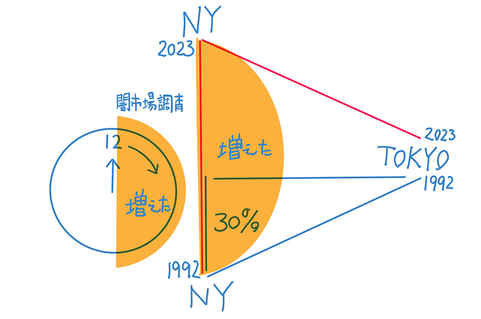 | ■一日一文章トレーニング。 「日本の停滞具合はこんな図の感じで良いのでしょうか」 いやはや。毎日書くことなんて全くないのに、毎日気合で自分の内面を曝け出す恥ずかしさ。それを別名を趣味とも言う。ノリノリで訳ワカメなことをつらつらと書くことは適当であってこその成せる技でもある。昨日は雹に打たれて物理的に大量に葉を落とすイチョウの木の色付きが原因かもと予想しましたが、全くそのような気配は全くありませんでした。過去写真データを振り返ってもイチョウの紅葉はいつも通りの色変化です。雹の激突が面白おかしいスイッチONになって欲しかった我が願望でもありますが、正直に言うと、雹被害もない標高の低い荒川の公園の方が紅葉が進んでいるぐらいの不思議です。近日中にiPadに画像を貼って定点木の変化イメージを図像化したいと思います。要は木々と私は物理的なショックは嫌いです。オレらのスイッチのON・OFFは常に暑い・寒いと感じる温度一択で、これは単純なロボット感覚のような、または、童話の太陽と風のみたいな、時間をかけて温度変化で行動を促す面倒臭さです。 ということで、 ご飯を食べたら、あっと言う間の寝る時間であるように11月も始まります。 秋でもあって、書棚から本を手にとると断捨離気分にもなります。 もう、これは絶対に読まないだろうと思う飽きた本を見つけてポイッと捨てる秋。 本を捨てる不謹慎者ではありますが、物の量が日々増えることを前提とすれば、ある程度、常に捨ててこそイーブンになる感じでもあります。 昨晩も、こんな経済の本なんて絶対にもう読まないわと思い、手にとってパラパラとめくって流し読みをしていると、1995年の若者の睡眠時間が短くなっている生活のデータが記載されていました。 わいみたいなダメな人間は朝も夜も弱いもので、今も昔もひたすら寝ている生活でもありますが、その時代の若者の20%・1/5が午前1時を過ぎても起きているという情報が書かれています。 「ふむふむ 何か面白いですね」 当時は24時間のコンビニなども生まれて若者の夜行性化が進んだ時期なのかもしれません。 ここには博報堂の「闇市調査」という深夜0時の時点で購入できるものの記載もあります。 1991年11月の調査で書店・薬局・レンタカー屋・クリーニング店が夜中でもオープンしており、都内40商店街の内15が夜間でも便利な街であるらしい。 今の若者が深夜1時にうろうろと街を徘徊しているのかだろうかと思ったりもしますが、どうなのでしょうか? パンデミックもあって、かなり生活スタイルも変容してしまった可哀想な若者たちでもあります。 私の時代であれば深夜0時以降に辿り着くお店と言えば、終電なくなってからの「謎のシメ」のラーメン屋です。 とりあえず、サングラスが必要な位に明るい照明の店内で食べるラーメンは美味しいのか?不味いのか?もはや味も覚えていない深夜にすする麺であります。 結局「もう一軒行こう」と何の為のシメなのかわからない不摂生な時代でもある。 この頃は実質所得は10年間で1.5倍増えたようで、この本によると人々の行動に余裕が生まれて、機械化や自動化も進み家事等の時間も減少して余裕が生まれてきた時代でもあるそうだ。 今の経済の物価高騰が何%ぐらいで、実質所得も何%の上昇と考えると全く異なる景色で羨ましい時代でもあります。 因みに、1985年のプラザ合意後に円高が急激に進み、1992年の東京とニューヨークの物価は31%も東京の方が物価の高い円の強い時代でもあります。 これは今の体感する東京とニューヨークの物価差を逆転した感じなのかもしれません。 1972年では20%東京が低い時代でもあるので、それよりも前の時代ぐらいまで遡った感じでもあります。 夜時間の使い方を見れば、夜の分だけ経済規模も必然的に膨らみ、当時は新しい生活形態が生まれてきた現象でもありました。 遡って現代は、警察権力を動員して「渋谷はハロウィン会場ではありません」の標語です。 本当に、いつまでたっても規制で保護することが本当に好きなことで、規制緩和の発想が完全に抜け落ちています。 普通に考えれば、そのかかるコストを安全的に祭りを盛り上げる為に使えば良いと思うのですが、渋谷の若者文化がまた一つ消えました。 阪神の道頓堀の飛び込みもまた、同じ。 わいであらば、禁止はするけれども救護ボートと救出班を用意して助けるように努めます。 人が集まれば、ハロウィンでなくと毎日事件が起きているのが街というものであります。 アベノミクスを含めても頭から末端まで本当に逸材揃いで本当にドン引きするわ。 |