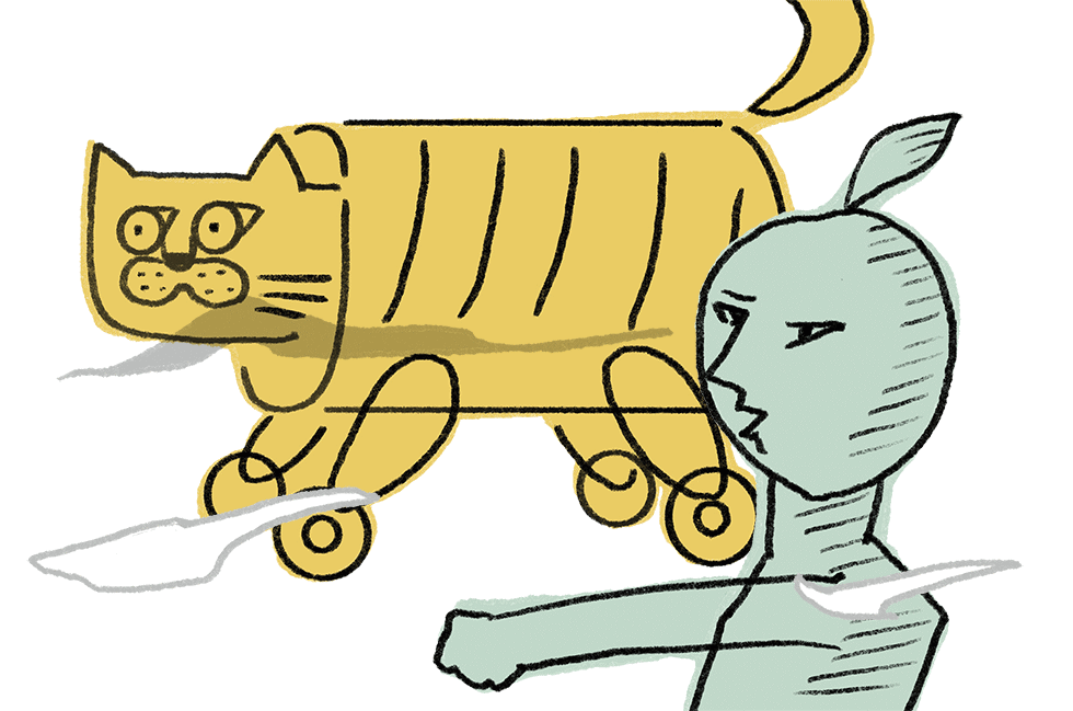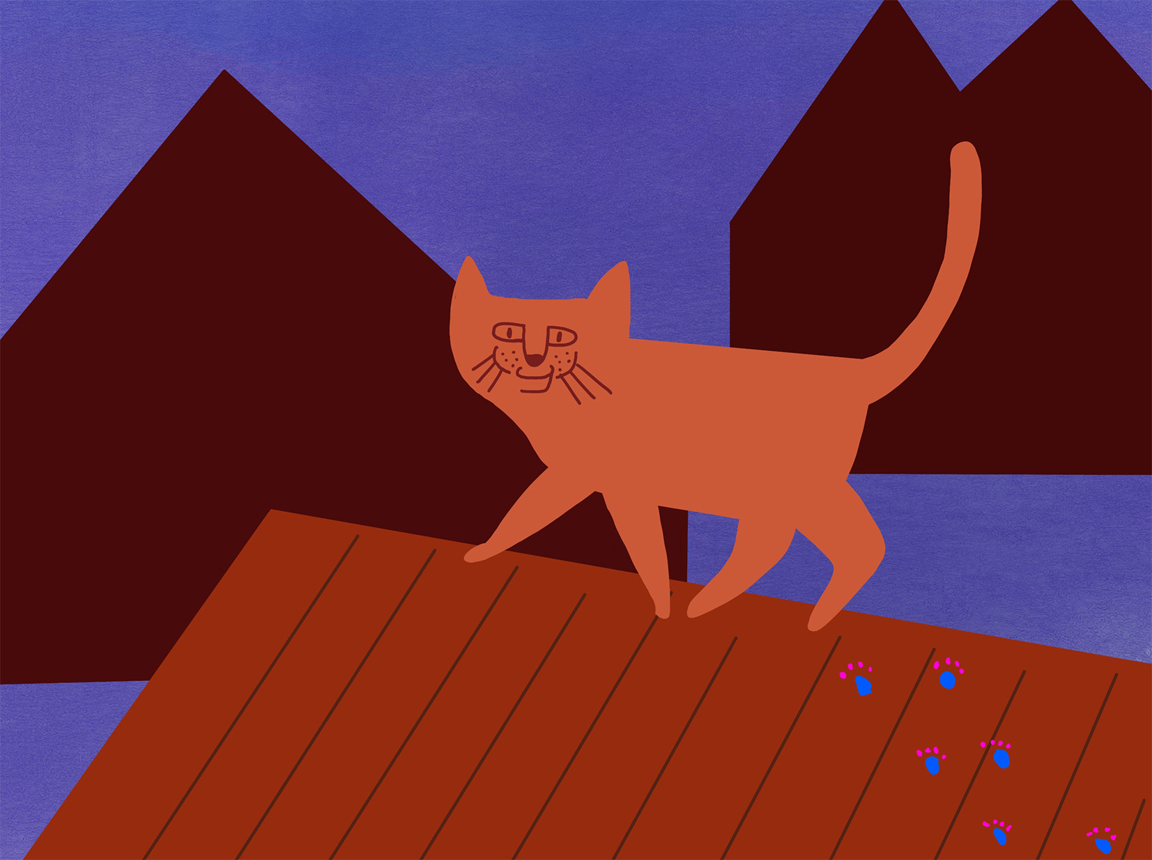 | ■屋根を歩く猫。 短時間で意味不明な猫のアトラクションを作るのは、なかなかハードルは高い。 |