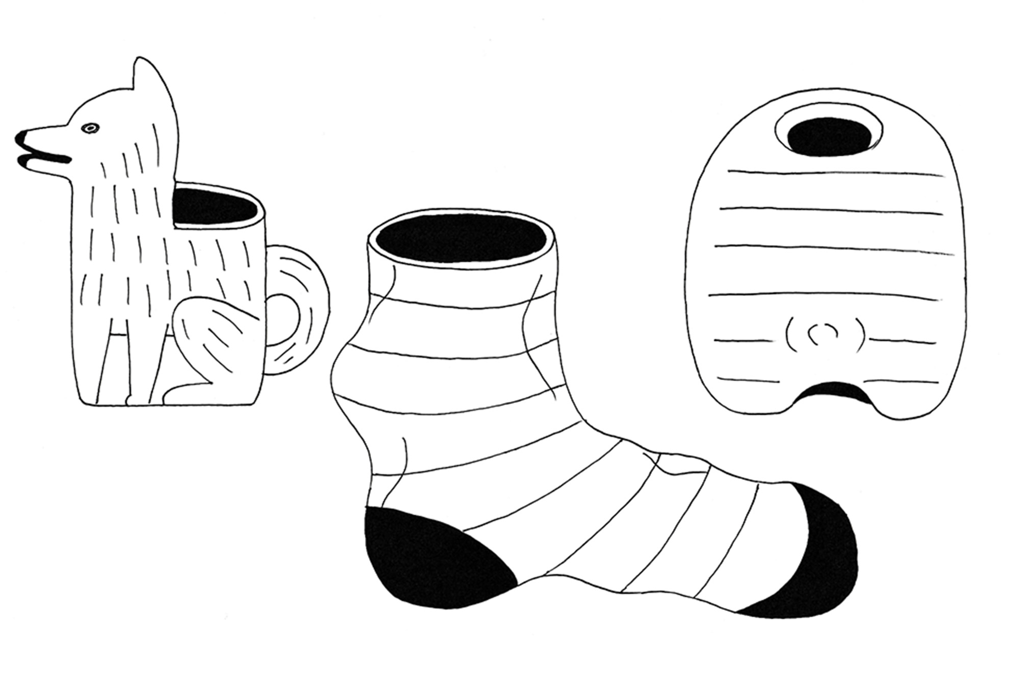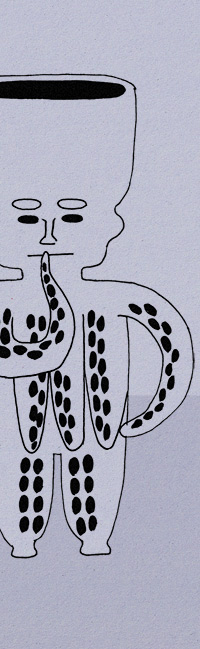 | ■私は友人と共にこれまた国宝のタコ式土器とタコ舟を見ながら「世にも変な土器だなー、そう言えば・・・」とわいわいと雑談を楽しんでいたならば、急にタコ舟のタコ旗がはためき土器に「シー」と注意される。当博物館での大きな声の私語やお食事しながらのご鑑賞はお控え下さいタコ。 |