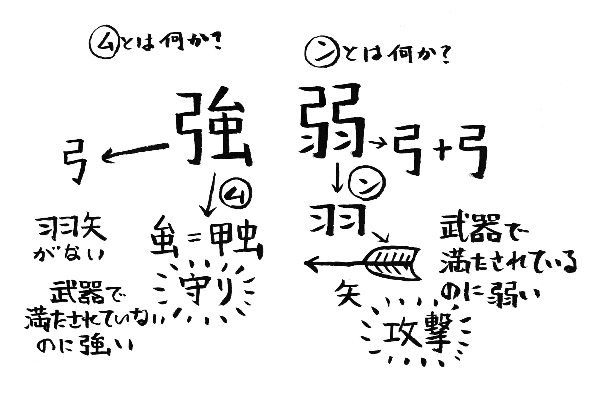 | ■一日一文章トレーニング。 「あなたの強みとは何ですか?」 と聞かれてスラスラと答えることの出来る人とは良く出来たお人なのか?または、マニュアルな型を持つペテン師かもしれない。 私の強みとは何かと考えれば大問題ですが、自分の「強み」とは何かと考えれば、それは自分自身を見つめるような作業でもある。 私の頭に最初に浮かんだのが「ゲームを少々嗜んでおります」なゲームで遊ぶこと。 強みを得意と解釈しているもので困ったことだ。 もし仮に「私も何々のゲームをやっていましたよ」などとトントンと話も弾むとすれば、ダクソ系などを少々嗜んでいるぐらいのゲーム好きでなので、ほとんどのゲームは遊んだこともない。 よって、「そのゲームもそのゲームもとやったことなく、アハハ」と何だ?コイツみたいになる!! ダクソ系のゲームとは他人のゲームの世界に侵入したり、自分のゲームの世界に他者が侵入したりと予想外のゲーム展開を生み出すことが好きなもので、「そのような場所から攻撃して来るのかー」との予想外のクリエイティビティな攻撃に私は感動している。 なので、一般的なゲームの楽しみ方と少々異なるような気もして、ゲームで遊ぶことを自分の強みにしてしまう脳みそは少々痛い。 そのようなゲームの強みは何に活かせるかと考えれば、斜め上のドローン攻撃ぐらいはできそうでクリエイティブな攻撃ならダクソの侵入勢は専門家でもある。 ならば、「絵を少々嗜んでおります」でも良いかな。 毎日、絵を描くことも毎回何を描こうかと頭を悩ませるもので、長文を書くぐらいに集中力は高めている。 しかし、「どのような絵を描かれていますか」と聞かれてタコ埴輪のような絵を見せれば「ふ~ん」みたいな間違いなく気まずい空気が流れる。 「何々風の画風ですか」と言われても何々風の画風もないもので、タコ埴輪の絵を見せる方も、見せられる人も気まずい。 そして、国宝タコ埴輪について真面目に「そのような埴輪はありません」と言われたとしても、「いやはやその通りでございます」がと、創作とはタコ埴輪のようなものかなと思うものだ。 ならば、「文章を多少嗜んでおります」と書くことは強みになるかと考えるものでワード5ページぐらいならスラスラと書けるようにトレーニングしている。 なので、得意と言えば得意かもしれないし強みかもしれない。 しかし、上手下手で言えば無茶苦茶な文章でもあり下手である。 文書とは書けば書くほど下手になるもので、長文を読む苦痛を多少和らげるようにシンプルに面白可笑しく脚色する強みはあるものの、絵も文章も「味」だと思っている。 文章とはイタコさんではない限り考えている以上のことは書けないもので、たくさんも書けば頭の図書館もそれなり整理されるものだ。 そして、文章を書きながら「あれはこーかな、これはこうじゃないから、やっぱりこうかな」と試行錯誤をする人間の芯を作るような部分はある。 絵が「みる力を鍛えること」だとすると、文章は「感じる力を磨くこと」である。 おそらく、文章には「論理的に積み上げる文章」と「感じる文章」二種類あって、私の場合は後者の方が大きいのですが論理的に人の強みとは何かと知ろうとすると下記のように書く。 「強み」とは弓と虫の字で出来ており、虫の字にムの字が付くことで硬い甲羅を持つカブトムシやカナブンのような甲虫の意。 飛び道具である攻撃用の弓と、硬い甲羅のある甲冑を合わせ持つことで「強い」となり、攻守の2つの要素が交わったものを「強み」と表現するようである。 この漢字の意味から解釈すると、人の持つ「強み」とは秀でたものと同様に、守りの強み部分についても書かないといけないように思うものだ。 本当の「強み」を知ろうと思えば「弱み」について知る必要もある。 ここで面白いことは弱みの武器は攻撃用の弓が2本揃っているのに「弱い」意味となること。 私の解釈では弓の下のンは「羽」の字のンと同じで、たくさんの攻撃用の弓と矢が並んでいるように見える。 なのに弱い。 そう言えば、「強い」弓には矢のンは書かれていないもので、「ペンは剣より強し」のような備える強さを表現しているのかもしれませんし、本当の強さについて表現されているようにも思うものだ。 これは防衛力の欠如なのか、歩兵の装備がないことを意味するのか、わかりませんが攻撃的な兵器だけでは弱くなってしまうのが強弱な漢字の概念を生み出した人の心の深さの一面である。 これが私が思った「強い・弱い」の面白いところ。 強み:「弓+ム虫」矢のない攻撃用弓と甲冑 弱み:「弓にン+弓にン」攻撃用弓と矢がたくさんある状態 幸いに、私にはもう自分の「強みや弱み」について考えるようなお年頃でもないもので、振り返っても自分の強みなどを聞かれた記憶もない。 そもそも弱いことはダメで強いことが良いことなのかの疑問もあるもので、弱いからこそたくさんの武器を持つこと