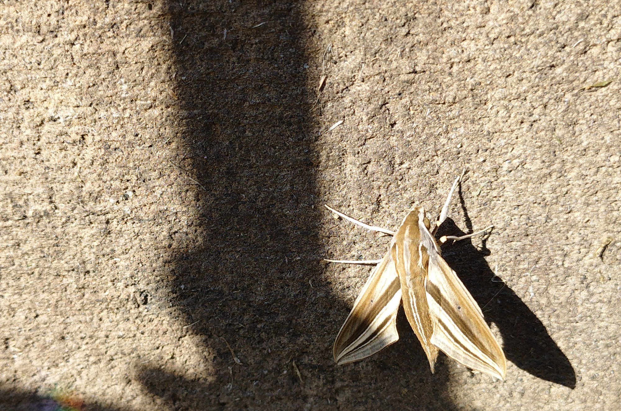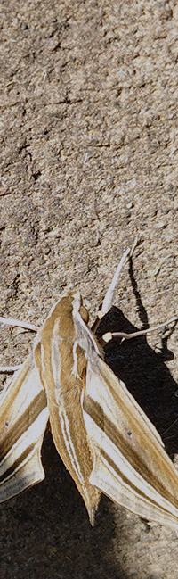 | ■セスジスズメは止まって蜜を吸うのでは無く、わざわざ図のようにホバリングしながら月夜に咲く花の蜜を吸うようようである。この蛾は結構大きくてかわいい蛾なのかもしれない。 |