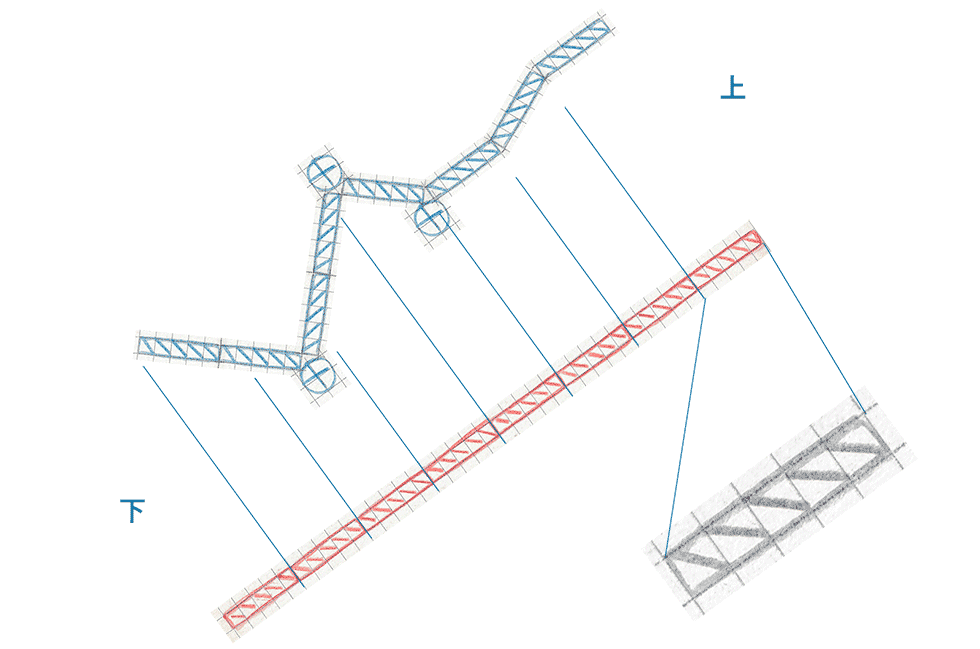 | ■一日一文章トレーニング。 「朝一番の犬が唇をペロペロして挨拶してくる理由を犬の気持ちになって考えて、そして、朝一番に直線道とくねくねと曲がった道を描いて移動時間差を比較する」 「あなたはだんだんと犬となる犬である」である。 そして、催眠状態となりここに1匹の庭犬を爆誕させる。 家の中に入ることもなく玄関までの境界線上に住まう犬。 境界線上の犬とは外にも内にもの両方に聞き耳を立てる犬である。 外から異物な混入を探知すればワンワンと吠えて警戒し、家の中の様子を聞き耳立てて聞いて気を配る犬。 境界線上の庭犬とはレーダーで言うところの360度のセンサーを張るもので、犬の中に住まう犬とはまた異なる視点を持っていると思う。 そして、外に住む野良犬とも異なり常に境界線上に立って世界を見ている。 ワンは1匹で暗い闇の中で寝て、朝になると明るくもなり一日も始まる。 そして、ファミリーが「おはよう」の挨拶にやってくれば、それはもう尾骨な尻尾ふりふりと「おはようー」とうれしいものだ。 されど、ハイジャンプをしてまで唇を奪おうと思わない。 境界線上のワンワンは常に両耳を効かして周辺を探っていると考えれば、これは情報収集の一種でもあり、調査取締官ワンは常に耳を立てながら情報収集しているものだ。 外と内の回りの状況を敏感に聞き分け、朝起きてお腹も減った中で飼い主でもやって来れば「こやつは何か食べていないのか」と口の中がとても気になり調査もするものだ。 それが、朝のワンワンの唇ペロリンではなかろうかと、私の中の犬が申す。 犬の世界もまた複雑で本当のところはどうだかわからないけれども犬はそのように思う。 情報とは意外に盲点ですが食べ物等と同じく生死を分ける情報でもある。 前述のように人類は的確な情報を得ることで生き長らえてきた面もあるもので、意図的に捏造して吹聴することとは社会を撹乱させ人をあやめることと同義の人類の繁栄を潰し間違った方向に仕向けるプロパガンダな大犯罪である。 これは間違いなきことで、単なる車の運転でも人や乗り物が急に飛び出してくる微妙に見通しの悪い交差点を知る・知らないの違いは事故に遭う・遭わないに直結する。 人はそのような情報を自分で「ヒヤッ」と経験し学習するのか?人づてやメディアを通して聞き共有したり、または、道が改良され救われる命も多いであろう。 情報を知る意味とはそれだけ大きく大切なことで、玉石混交の情報の中で経験に基づく情報とは結構大切な経験呆則でもある。 ということで、 私は朝一番に色鉛筆で線を書き真っ直ぐな線とぐねぐねと曲がった線のグラフを書く。 手書きの線をデジタルに取り込んで編集することは味のあるもので切り貼りせっせと架空の道を作る。 この線は何を意味するかと言うと赤色の道が見たままの直線道で、青色の道がうねった道で移動距離の時間の変化を比較する図。 1ブロックは方眼線5マスで、X秒で1ブロック移動する図。 直線道路は8X秒で8ブロック進み、ぐねぐねと曲がる道だと当たり前ですが地図上の移動距離は直線道路が8ブロック進んだ時に、うねった道は7ブロック分しか進まない。 そして、これが川の流れだと仮定すると曲がる道の壁にぶつかる滞留時間も発生する。 この図だと1うねりの曲がり角で水は壁に当たり+4マス分の時間的なロスを発生するような図である。 滞留が起こればその分だけ水かさも増え、ここでは3つの滞留する壁で12マス分の時間的な滞留とそれに伴う水量の増量も予測できる。 先日のヘビ道の横には直線に真っ直ぐに伸びた広い道が平行して走っている。 経済効率を考えればこの直線道路を走った方が時短でもあり便利でもある。 しかし、面白いことに利用者の多い道はこのぐねぐねと曲がった狭いへびの小道の方である。 これは経済効率とは矛盾しており、人や人の導線となるものが必ずしも効率性を追求していないことを意味している。 実際にうねうねと曲がり自転車で走れば見通しも悪くスピードも遅くなり、このような図より上から下に下る道の移動時間はもっと大きく変化するだろう。 されど、人も自転車もぐねぐねと効率性を無視して移動しているもので、私はそのような光景を面白く思う。 |