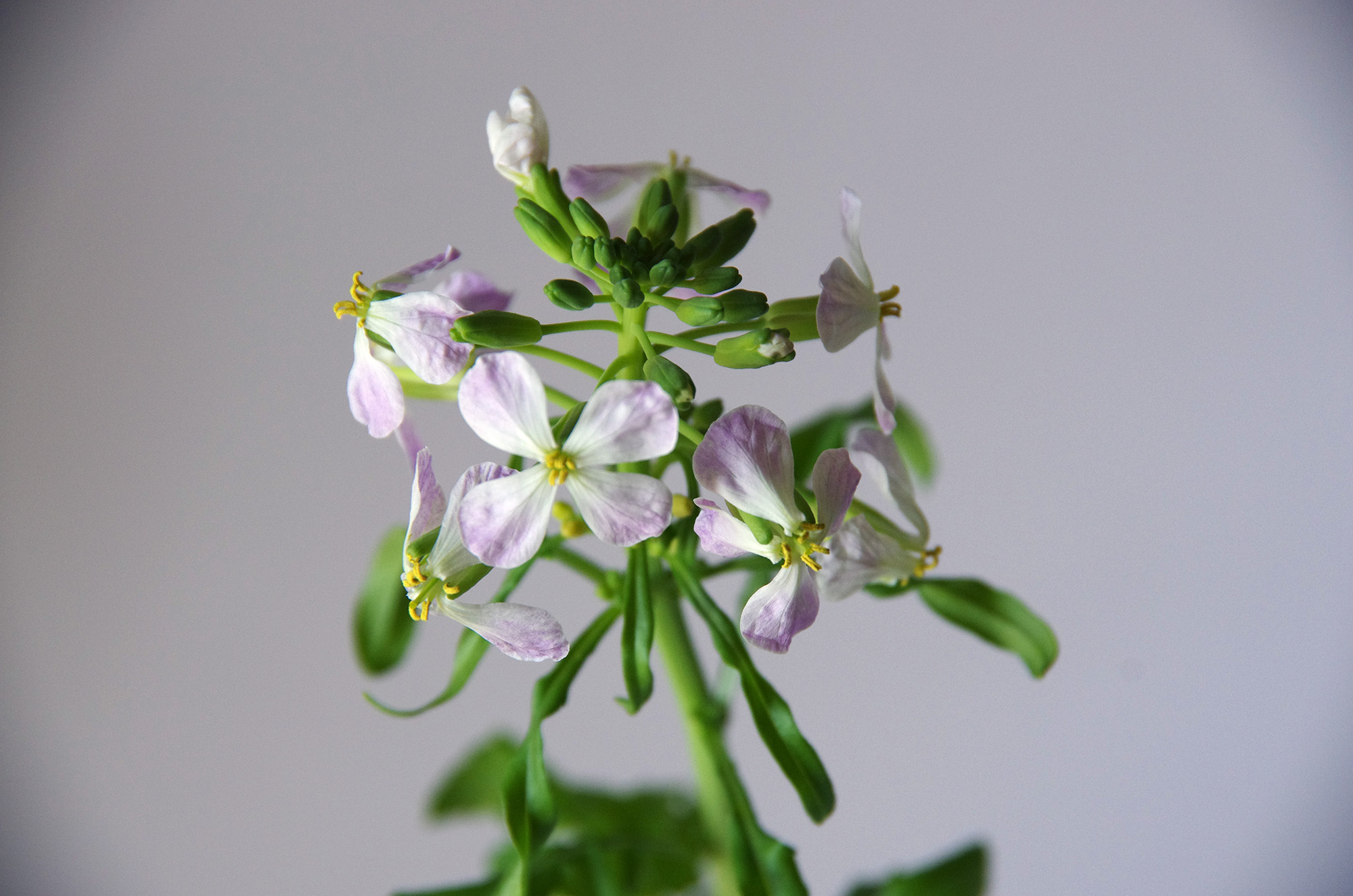 | ■一日一文章トレーニング。 「昨日、2月8日(日)は雪降る寒い一日でしたが、我が家では小さな春を観測する」 私は雪が降る前や直後のキーンと冷えた空気が好き。 冷たい空気を吸い込めば脳天までシャッキと真っ直ぐと伸びる何かを感じるもので、それは何かと考えてもよくわからない身を引き締めるシャキ感だ。 寒い寒いと背筋を丸めポケットに手を突っ込んでいたとしてもピーンと伸びる何かはあるもので、それが「冬だなー」と思うもの。 とりあえず、冬の鉛色の空と雪が降る前の冷たさは好き。 これは真夏な太陽な日差し焼かれて「サマー」と思う時と似ているもので、どちらの季節も好き。 また雪が降る直前のシーンとした音のない世界も好きで、ふっと窓の外を見た時に音もなく深々と雪が静かに降り積もる様もまた好き。 雪が運んでくるものは(1)冷たい空気と、(2)汚れた街の空気をキレイに洗う雪の白い美しさと、(3)音の無い静かさである。 雪国だと雪かきだージャリジャリガーガーと騒がしい雪の騒音とはあるかとは思うのですが、都会の雪は静かに積もり、ざわざわとした人の足跡と喧騒で溶ける。 正に「東京ゴッドファーザーズ」の積雪のように東京の街に雪が降り積もって、私は鼻を真っ赤にしながら冬を感じる。 雪の景色とは子供の頃は手をしもやけにする程に好きな景色で、そして、大人になったとしてもまだまだ雪は好き。 しかし、社会人となると電車の遅延だ!雪かき!滑ってコロリンと危ない!業務も滞って雪の「困った話」で溢れる。 私はそのような大人の意見を「そうだ!そうだ!」と同調しながらも心の中では雪合戦である。 雪~やコンコンと走り回って喜ぶのは子供と犬で、遅延したり学級閉鎖に台風と休校したりすることもやっぱり喜ぶのは幼き頃からの私である。 なので、電車が止まったならば「どうしようか?」と考えてティータイム。 良く言えば自然事を自然と受け入れているとも言えるし、悪く言うと無責任、人間性の欠如かもしれないもので、そのような時間は昔から有効に愉しむ。 このような事柄は大人になれば自然と年月が解決するのかと思っていましたが純白なガキとは大人になってもやっぱりガキだ。 「僕はガキと雪が嫌いなのだ」という大人談義に花を咲かせながらも、私は今日も見えない退化した尻尾(尾骨)をフリフリと振るもので、「あー」退化した尻尾を動かすにはどうしたら良いのでしょうか。 そして、そのような冬の真っ只中でおかしな話もあるもので、我が家では寒くて雪の降った日に春の気配を観測する。 それは(1)お正月に京都で購入した聖護院大根の茎を水差しに挿していて花が咲いたこと、(2)土植えした橙の葉っぱ横から突然ニョッコりと新芽が生えたこと。 (1)聖護院大根はここ2~3日で茎がぐんぐんと伸びて、昨日は花が2つ咲き、今日も2つ咲いて4枚の花が咲く。 薄い紫ピンク色の4枚の花びらはとてもかわいい。 よく見ると桜の花が咲いているようにも見えるもので、我が家では雪が降った寒い日に春がやって来たようでもある。 まだまだ、たくさんの蕾があるものでこれは紫陽花のような花咲く集合体となりそうだ。 胚の辺りからは根っこも生えて最終的には春にもなれば土に植える替える予定。 (2)橙は寒さに弱いようで冬も早々に室内でぬくぬくと育つ温室育ち。 そして、昨日は雪が降る今年一番の寒い冬の真っ只中に新芽をわらわらと出す。 昨日は5ミリ程の新芽が芽吹いたと思えば、今朝は約15ミリに急成長している。 去年は新芽をアゲハチョウの幼虫に食べられて虫食い状態の葉っぱですが、その葉っぱの付け根部分から急に新芽が出てきた。 ビックリ!! 新芽は小さな4枚程の葉っぱで形成されており、2年目の橙は一気に葉っぱの1枚から4枚と4倍に増える。 いやいや、よく観察すればその横にトゲのような新芽がまだあるようで、1本の葉っぱから8枚の葉っぱで8倍と増えて今年は光合成モードの成長となりそうな予感。 新芽が生えてきているのは上から17センチ程までで、下の方の葉っぱはまだトゲトゲで綴じている。 急に新芽が生えたというよりもトゲが割れて新芽となったようだ。 緑色だった茎も薄茶と緑色のまだら色となり木の幹っぽくもなり、数年後には大きく育ちて甘くて美味しい橙を収穫する予定だ。 わくわく。 雪降った鼠色の空の寒い冬のど真ん中に春の気配を観測することとは面白い。 |