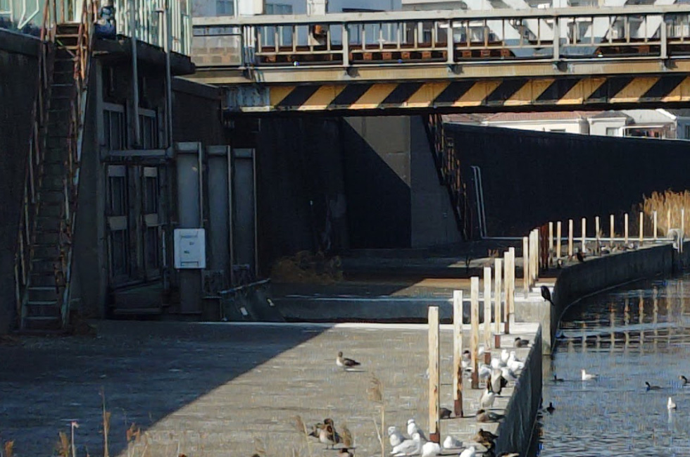 | ■一日一文章トレーニング。 「へび川を流されて荒川土手に辿り着く」 R080213 柑橘系植物の葉が約3センチに伸び、4つの新葉の内3枚の葉が開く。 R080213 聖護院大根の花は11輪咲く。 R080214 柑橘系植物の葉が約4センチに伸び、4つの新葉の内3枚の葉がさらに開く。 R080214 聖護院大根の花は13輪咲く。 R080215 柑橘系植物の葉は4センチとまりで葉っぱが少し開く。 R080215 聖護院大根の花は12輪咲くが2花散る。 R080216 柑橘系植物の葉が4センチとまりで4枚とも葉が開き、5枚6枚目の葉っぱの新芽も生えてくる。 R080216 聖護院大根の花は12輪咲き、2花散り、背の高さが40センチ程までに成長する。最初はピンポン玉のように花を咲かすかと思っていましたが立方体というか筒状に下から上に花は咲くようだ。 ということで、 昨日はポカポカと春のような陽気で、私は蓋をされた川の道を走ることにする。 自転車に乗れば手袋も不必要な暖かさで、いつかはやりたいと思っていた隅田川流れである。 へび道を始発に川を遡上し途中で右折して隅田川へと下る邪鮭道。 ルートはネットの荒川区立図書館の藍染川(谷田川排水路)を参考とした。 https://www.library.city.arakawa.tokyo.jp/contents?0&pid=2510 谷田川はそのまま北上すると染井霊園あたりから流れて来ているようで墓場好きとしては染井霊園も気になるが、地図とにらめっこしても暗渠された川の道がよくわからない。 仕方がないので今回は西日暮里を抜ける藍染川ルートで隅田川に流れる。 へび川をうねうねと直進し「よみせ通り」を真っ直ぐに走る。 日曜日でたくさんの人で賑わうよみせ通りを抜けると大きな道路の道灌山(どうかんやま)通りに出て、その道を右折してJR西日暮里方面へと坂を下る。 道灌山通りもまた大正時代の大工事で人工的な川が作られたようで、今は暗渠されて大きな道となる。 西日暮里まで下ると街がごちゃごちゃとややこしく道を1本間違える。 なので、川途中に丘に上がり再び川に戻るもので、京成本線の線路に沿って走るのが正規ルートだ。 線路沿いに新三河島駅あたりで藍染通りの看板を見つける。 川の遺構は見つけることは出来ませんが道の名前から暗渠された川の存在を感じる。 御茶ノ水や水道橋と昔は鉄道の線路開発とは水路工事とはセットであったのかもしれない。 そして、鉄道の鉄骨が古く味わい深く格好良くパシャリと撮影する。 このまま真っ直ぐに進んで水道処理場の横を通りすぎると隅田川へと流される。 谷田川排水路との接続部分はフェンスで隔離されて近づくことはできませんが、水門のようなものを遠くから確認できた。 排水路と隅田川が接続する部分には鴨やカモメなどの水鳥がたくさん浮いている。 迷探偵の推理では温かい水と冷たい水が混ざり合う部分は鳥たちにとって良い漁場なのかもしれない。 柵中の陽当たりの良い場所はヒドリガモの大群の寝床となる。 そして、そのまま直線して荒川土手まで抜けようとすると北千住界隈でプチ迷子。 川の近くとはいつも迷子となる既視感で、川に抜ける橋とは大きな橋しか存在しないので大通りを走らないと土手まで近づけない呆則である。 ということで、 荒川土手をサイクリング。 自転車マジ勢にすいすいと追い抜かれ真っ直ぐと川沿いを走ると気持ち良い。 途中で猫ちゃんを見つけて「にゃー」挨拶して撮影していると、野良猫は眩しそうに滅茶苦茶警戒している。 これ以上は近づけないので、遠くからパシャリと1枚。 すると、我らの背後からおじいさんがスタスタと歩いてくるもので、そのジイさんは猫の横をかすめ歩き枯れたススキの草むらの中に消える。 猫は我らに滅茶苦茶警戒しており、なのにジジイには無警戒ですこすおかしい。 あのジイさんは亡霊かもしれないと我勝手に思い冬枯れのススキの亡霊と名付ける。 そして、河原でフリスビーをして、家に帰ろうと足元を見ると青く小さい丸いものを発見する。 しゃがみ込んで何かと観察するととても小さな花で画像検索すると「イヌノフグリ」という花のようだ。 花言葉は忠実、信頼。清らかで確かに清らかでかわいい。 足元にはそのようなイヌノフグリがたくさん咲いているもので、我が巨人はそのような小さな花を踏みつぶす巨人であった。 荒川土手とは川が見えない程の広い空間で空を見上げれば我は真のコビトであり、そして、足元を見れば冬枯れした草むらの隙間にコビト用の小さなかわいいお花がたくさん咲いて、我は巨人のようでもある。 |
