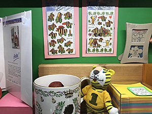 ■■■■■ ヤノシュ ■■■■■ 本の製作過程のゾーンは若干、机っぽくなるように表現しております。机には製作当時に私たちの身の回りにあったものを並べています。 このトラの人形やシールはドイツでよく見かけることができたキャラクター・ヤノシュさんの作品です。私は本で読んだことはないので内容は詳しく知りませんが、失恋したトラくんをなぐさめたり料理したりするお話(児童文学)みたいです。また、これら商品はスコスでもグッズ販売していました。この作品もM.GAUさんの作品と同じ水彩画でやさしい雰囲気のイラストが大好きです。トラくんの人形もとてもかわいい。本当にかわいいわ〜。 ![]() ■さまよえるスコス展 ■さまよえるスコス展のイベント情報 ![]() |
