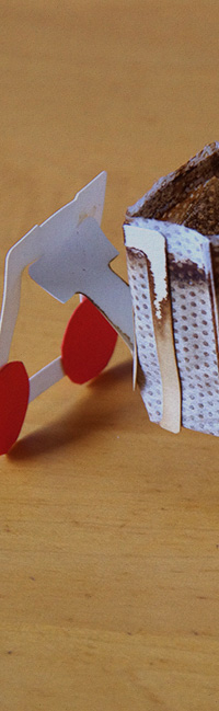 | ■一日一文章トレーニング。 「ドリッパーにタイヤを付けてモビリティにしたよ☆」 今朝は新しいUCCの箱を開封して新しいコーヒーをドリップする。 新しいコーヒーの注ぎ口は10角形で最近まで注いでいたコーヒーは長方形でもあったのでドリッパーの形状とはメーカーごとに微妙に異なる。 何となくドリッパーの使いやすさ・使いにくさ等は感じていたものの値段ばかりを気にするもので、このようなメーカーごとの違いを観察出来てすこす嬉しい。 注ぎ口が広いと注ぎやすさもあるもので一投目のコーヒーの粉を湿らせる儀式で湯はこぼれない。 10角形の注ぎ口はドリップのひっかけ部分に斜めの折り線を入れることで広い口を再現しているようで、流石にコーヒー専門メーカーの研究成果のようでもある。 不織布とはカタチを持たない布でもありドリップさせる引っ掛けの型紙が折り紙のようにカタチを変化させる。 面白い。 私のコーヒー道は一投目からすでに的外れな場外ホームランでテーブルにこぼし、フィルターを通さずに湯を直接カップインしてブラックコーヒーを薄めてしまうこともある。 なので、的が大きいことは良い。 実は私は物凄く手が器用でもあり結構何でも作れて細かい作業も得意。 しかし、液体を注ぐという基本動作が苦手なようで器用貧乏とは正にこのようなことかもしれない。 さっそく器用貧乏を辞書で調べると、器用な為にいろんなことに役立つが一つのことをやり通さないので貧するようだ。 正にこの文章に体現されている。w 一般的にコーヒーをドリップしたならばポタポタと落ちないように気をつけて運びポイッとゴミ箱に捨てる。 なので、生活者とはドリッパーの形状云々に関心を抱かない。 しかし、我が家とはコーヒーの粉は植物の土に混ぜて再利用し植物たちにもコーヒーブレイクを提供している。 何という素敵な保護者なのかと思うものの、植物にコーヒーの残り粉や茶葉が良い事柄なのかよくわからない。 今のところ少々のコーヒーの粉や茶葉のカスを与えても枯れや弱りもないようで大丈夫なようだ。 発酵した茶葉であればほぼ腐った葉っぱのようでもあり土も増えて何かしらの栄養もあるかもで一石二鳥かなとも思っている。 ※何の確証もありません。 よって、使用済みのドリッパーは数日間キッチン上に引っ掛けられて乾燥し春の土作り要員として溜めている。 お洒落な家人であればキッチンに使い古しのドリッパーが吊るされるだけで「キー」と発狂してしまうようなゴミである。 生活感丸出しとはこのような乾いたドリッパーとは主力級でもあり「これはなかなかいいドリッパーだ」と思えば乾いたドリッパーをカッコいいとお部屋に飾っている。 乾いたドリッパーが倒れば当然コーヒーの残り粉がこぼれ、そのような面倒事を処理しながら昨晩お風呂上がりにやっぱりこのドリッパーにはタイヤを付けたく思う。 厚紙に丸を描きハサミでジョキジョキ切ってタイヤを4個切り出して貼り付けるとモビリティに魔改造できた。 悲報!またゴミを作った。 このような工作物なゴミは捨てるのも勿体なく、最終的にサルガッソーな箱に仕舞われる。 そして、今はいろんなコーヒーメーカーのドリッパーの形が気になるもので、いろんなコーヒードリップを集めたい。 今まで何も気にせずにポイポイと捨てていたことが悔やまれますが、形状を比較するだけでの何だかヤバい収集癖発動させそうな予感でもある。 やばいやばい。 大してコーヒーやお茶の味の違いがわからないのにドリッパーの見た目の形状が気になる年頃でもある。 ドリッパーの尖った部分は折り曲げれば袋状となる。 我がよぼよぼな老後となれば、このようなロボットを連れ立ち重い食材や買い物袋はこの中に放り込んで運びたい。 買い物カゴがそのままモビリティように動くもので、ネギや大根もそのまま余裕で収納できる。 移動しない時にはドリッパーの如くペタンと小さく収納も出来て、バッテリーはそのように薄ペラくした時に邪魔にならない布部分に配置する。 モーターはタイヤに直接設置してステッピングモーター制御の4倍のフルパワーの力持ちである。 格好良い。 袋の部分に椅子を設置すれば街中に全くないベンチにも早変わりで、行きも帰りもこのベンチのような椅子に座りながら移動するのも面白そうだ。 |
